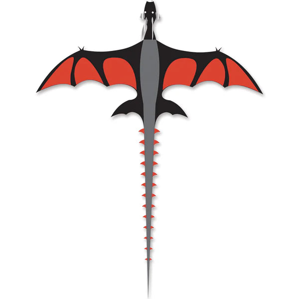 The Giant Dragon, created by the brilliant German kite designer Cartsen Domann, is a huge and powerful 3-D flying representation of this popular mythical beast. It is by far the largest framed production dragon in existence and presents a far more impressive flight profile that any typical inflatable dragon can obtain. Massively strong 10mm diameter Excel carbon rods sustain this creature's huge 14.5 foot wingspan and the main chassis framing is constructed with Sky Shark wrapped carbon tubes.
