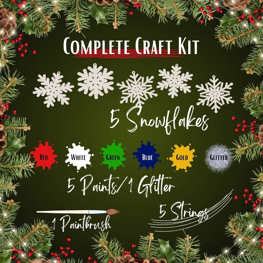 The Snowflake Craft Kit includes everything your little ones need to unleash their creativity. Whether it's for a family activity during the chilly winter months or a fun holiday party project, this kit is designed for engaging hands-on fun. Each snowflake is crafted from high-quality wood, providing a sturdy foundation for your child's artistic flair.